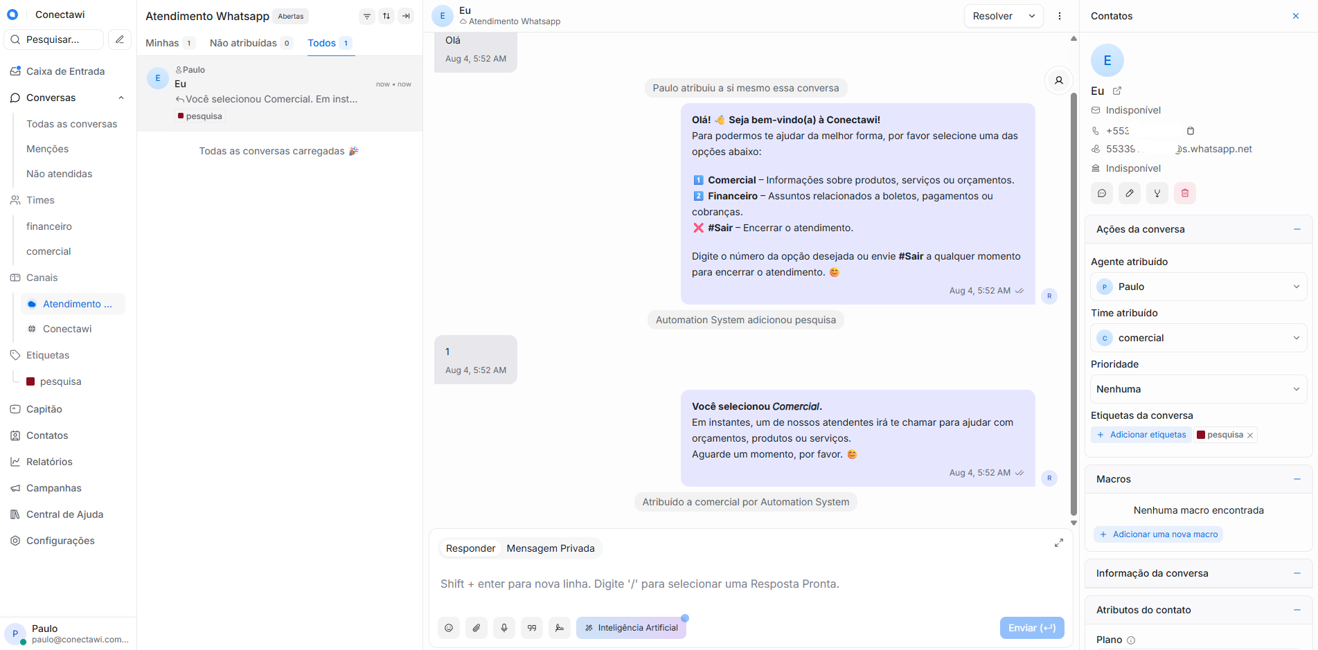 Conecta Woot - Atendimento inteligente no WhatsApp com múltiplos atendentes!